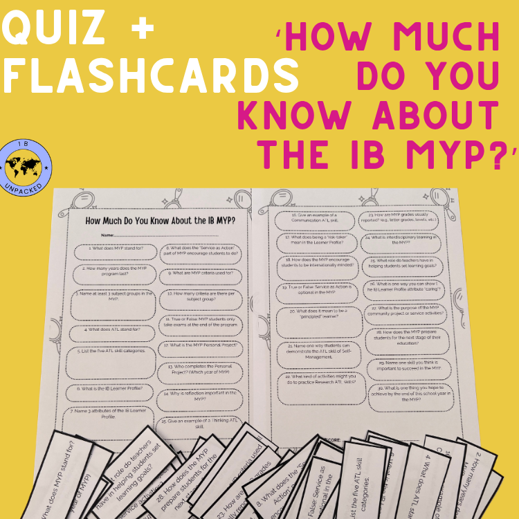 A little quiz can go a long way in clearing up confusion and demystifying the MYP! I’ve put together a light, friendly intro quiz covering things like ATL skills, global contexts, and assessment criteria. It’s a great way to help students start using key vocabulary and to show them that the MYP isn’t as scary or complicated as it might first seem. You could also get them to design their own quiz based on their own research.
