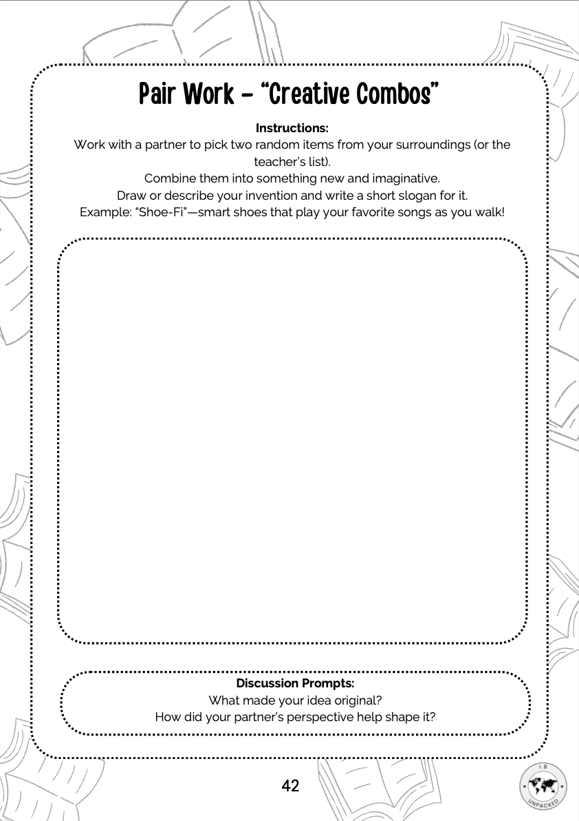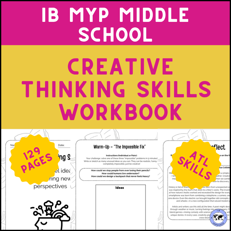 If you want to teach these skills with ease, and you liked the look of the activities that I posted above, then check out my Creative Thinking Workbook for IB MYP teachers. It includes 12 complete, no-prep 1-hour lessons—one for each sub-skill above. Each lesson is student-friendly, inquiry-driven, and ready to print or project. It’s a perfect resource for boosting ATL integration in your classroom while saving you planning time.