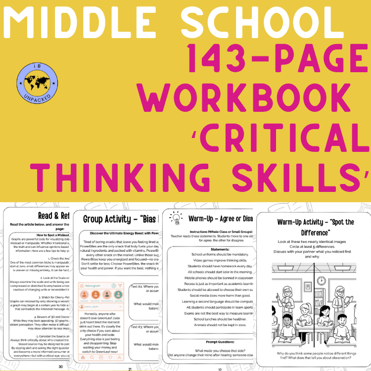 I hope you found this helpful. Do want more lessons like this one? I’ve created a Critical Thinking ATL Workbook for middle school students, packed with activities and scaffolded practice across subject areas. It’s designed to slot right into your MYP units.
